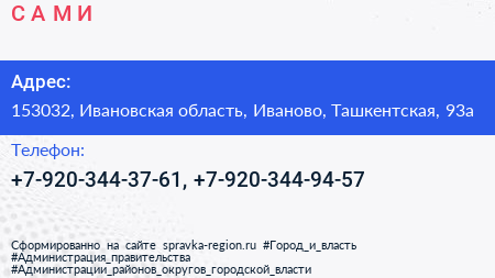 С.А.М.И. по адресу 153032, Ивановская область, Иваново, Ташкентская, 93а в дальнейшем Организация, размещена в следующих категориях: