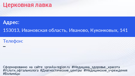 Церковная лавка по адресу 153013, Ивановская область, Иваново, Куконковых, 141 в дальнейшем Организация, размещена в следующих категориях: