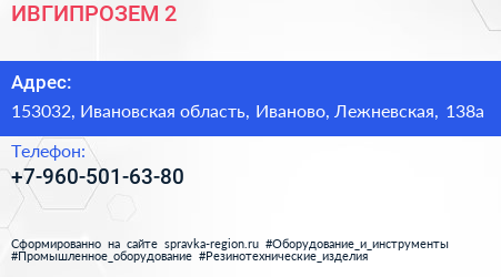 ИВГИПРОЗЕМ-2 по адресу 153032, Ивановская область, Иваново, Лежневская, 138а в дальнейшем Организация, размещена в следующих категориях: