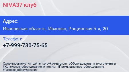 NIVA37, клуб по адресу Ивановская область, Иваново, Рощинская 6-я, 20 в дальнейшем Организация, размещена в следующих категориях: