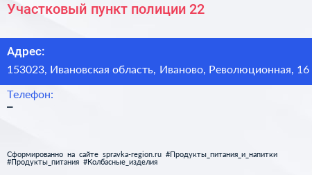 Участковый пункт полиции №22 по адресу 153023, Ивановская область, Иваново, Революционная, 16 в дальнейшем Организация, размещена в следующих категориях: