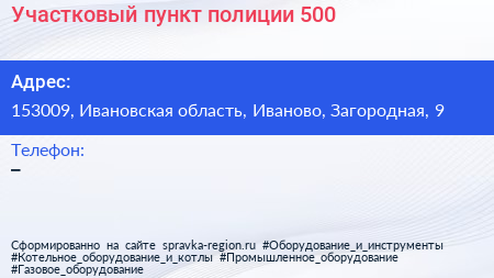 Участковый пункт полиции №500 по адресу 153009, Ивановская область, Иваново, Загородная, 9 в дальнейшем Организация, размещена в следующих категориях: