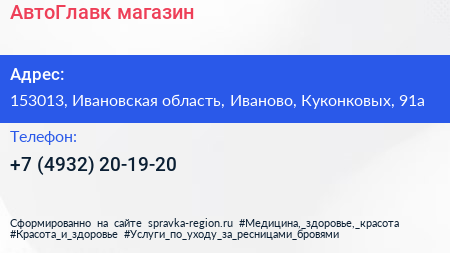 АвтоГлавк, магазин по адресу 153013, Ивановская область, Иваново, Куконковых, 91а в дальнейшем Организация, размещена в следующих категориях:
