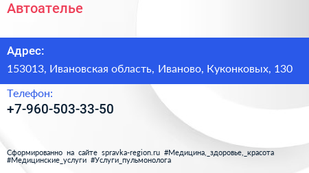 Автоателье по адресу 153013, Ивановская область, Иваново, Куконковых, 130 в дальнейшем Организация, размещена в следующих категориях: