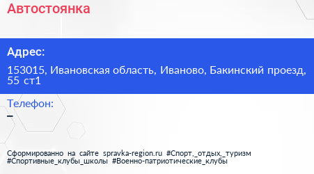 Автостоянка по адресу 153015, Ивановская область, Иваново, Бакинский проезд, 55 ст1 в дальнейшем Организация, размещена в следующих категориях: