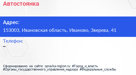 Автостоянка по адресу 153003, Ивановская область, Иваново, Зверева, 41 в дальнейшем Организация, размещена в следующих категориях: