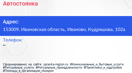 Автостоянка по адресу 153009, Ивановская область, Иваново, Кудряшова, 102а в дальнейшем Организация, размещена в следующих категориях:
