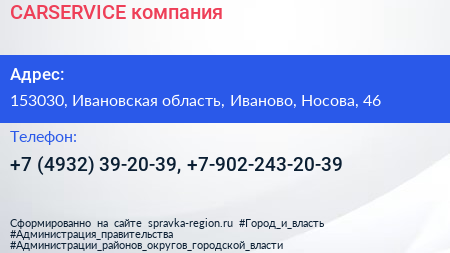 CARSERVICE, компания по адресу 153030, Ивановская область, Иваново, Носова, 46 в дальнейшем Организация, размещена в следующих категориях: