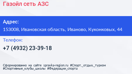 Газойл, сеть АЗС по адресу 153008, Ивановская область, Иваново, Куконковых, 44 в дальнейшем Организация, размещена в следующих категориях: