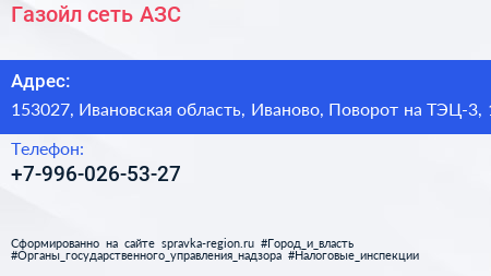 Газойл, сеть АЗС по адресу 153027, Ивановская область, Иваново, Поворот на ТЭЦ-3, 1 в дальнейшем Организация, размещена в следующих категориях: