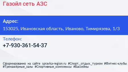 Газойл, сеть АЗС по адресу 153025, Ивановская область, Иваново, Тимирязева, 1/3 в дальнейшем Организация, размещена в следующих категориях:
