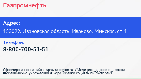 Газпромнефть по адресу 153029, Ивановская область, Иваново, Минская, ст 1 в дальнейшем Организация, размещена в следующих категориях: