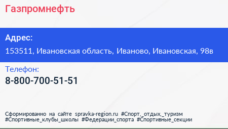 Газпромнефть по адресу 153511, Ивановская область, Иваново, Ивановская, 98в в дальнейшем Организация, размещена в следующих категориях: