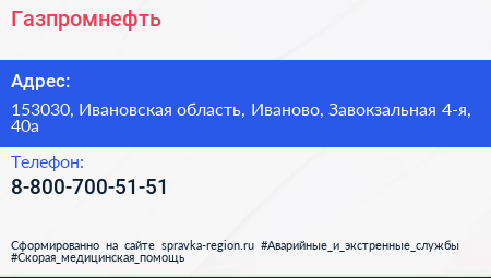 Газпромнефть по адресу 153030, Ивановская область, Иваново, Завокзальная 4-я, 40а в дальнейшем Организация, размещена в следующих категориях: