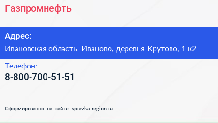 Газпромнефть по адресу Ивановская область, Иваново, деревня Крутово, 1 к2 в дальнейшем Организация, размещена в следующих категориях: