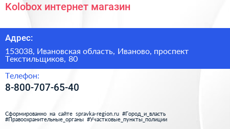 Kolobox, интернет-магазин по адресу 153038, Ивановская область, Иваново, проспект Текстильщиков, 80 в дальнейшем Организация, размещена в следующих категориях: