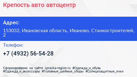 Крепость-авто, автоцентр по адресу 153032, Ивановская область, Иваново, Станкостроителей, 2 в дальнейшем Организация, размещена в следующих категориях: