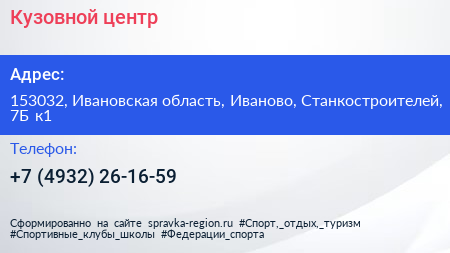 Кузовной центр по адресу 153032, Ивановская область, Иваново, Станкостроителей, 7Б к1 в дальнейшем Организация, размещена в следующих категориях: