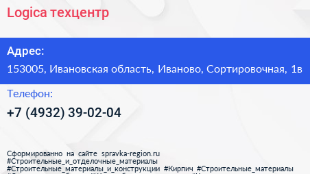 Logica, техцентр по адресу 153005, Ивановская область, Иваново, Сортировочная, 1в в дальнейшем Организация, размещена в следующих категориях: