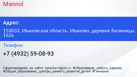 Mannol по адресу 153033, Ивановская область, Иваново, деревня Беляницы, 162а в дальнейшем Организация, размещена в следующих категориях: