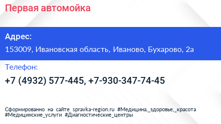 Первая, автомойка по адресу 153009, Ивановская область, Иваново, Бухарово, 2а в дальнейшем Организация, размещена в следующих категориях: