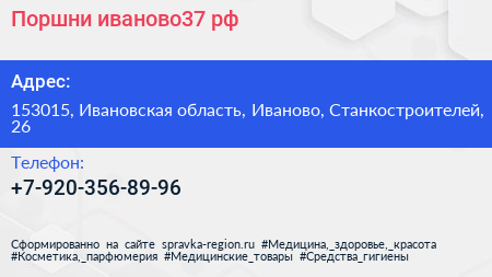 Поршни-иваново37.рф по адресу 153015, Ивановская область, Иваново, Станкостроителей, 26 в дальнейшем Организация, размещена в следующих категориях: