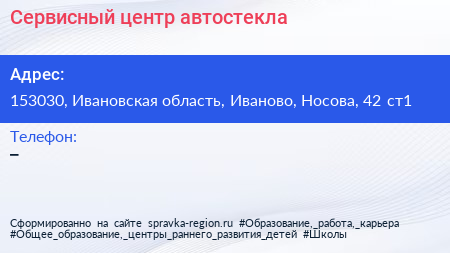 Сервисный центр автостекла по адресу 153030, Ивановская область, Иваново, Носова, 42 ст1 в дальнейшем Организация, размещена в следующих категориях: