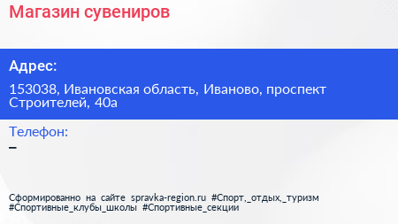 Магазин сувениров по адресу 153038, Ивановская область, Иваново, проспект Строителей, 40а в дальнейшем Организация, размещена в следующих категориях: