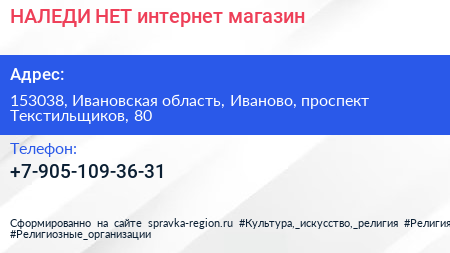 НАЛЕДИ.НЕТ, интернет магазин по адресу 153038, Ивановская область, Иваново, проспект Текстильщиков, 80 в дальнейшем Организация, размещена в следующих категориях: