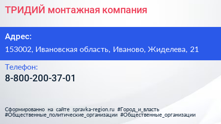 ТРИДИЙ, монтажная компания по адресу 153002, Ивановская область, Иваново, Жиделева, 21 в дальнейшем Организация, размещена в следующих категориях: