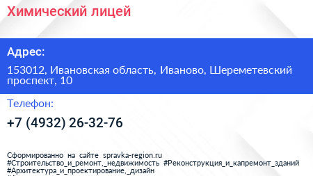 Химический лицей по адресу 153012, Ивановская область, Иваново, Шереметевский проспект, 10 в дальнейшем Организация, размещена в следующих категориях: