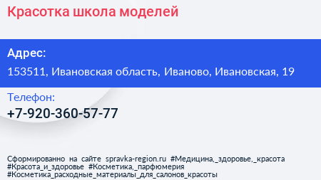 Красотка, школа моделей по адресу 153511, Ивановская область, Иваново, Ивановская, 19 в дальнейшем Организация, размещена в следующих категориях: