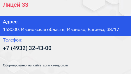 Лицей №33 по адресу 153000, Ивановская область, Иваново, Багаева, 38/17 в дальнейшем Организация, размещена в следующих категориях: