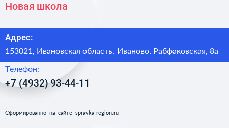 Новая школа по адресу 153021, Ивановская область, Иваново, Рабфаковская, 8а в дальнейшем Организация, размещена в следующих категориях: