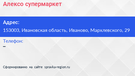 Алексо, супермаркет по адресу 153003, Ивановская область, Иваново, Мархлевского, 29 в дальнейшем Организация, размещена в следующих категориях: