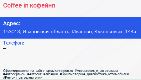 Coffee in, кофейня по адресу 153013, Ивановская область, Иваново, Куконковых, 144а в дальнейшем Организация, размещена в следующих категориях: