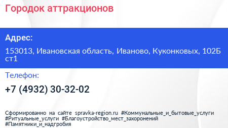 Городок аттракционов по адресу 153013, Ивановская область, Иваново, Куконковых, 102Б ст1 в дальнейшем Организация, размещена в следующих категориях: