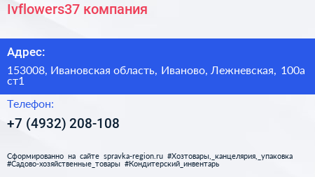 Ivflowers37, компания по адресу 153008, Ивановская область, Иваново, Лежневская, 100а ст1 в дальнейшем Организация, размещена в следующих категориях: