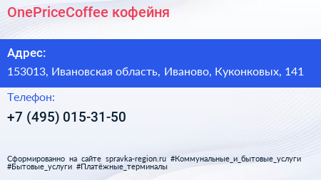 OnePriceCoffee, кофейня по адресу 153013, Ивановская область, Иваново, Куконковых, 141 в дальнейшем Организация, размещена в следующих категориях:
