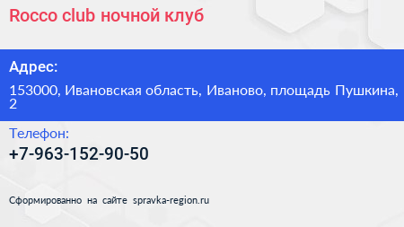 Roссo club, ночной клуб по адресу 153000, Ивановская область, Иваново, площадь Пушкина, 2 в дальнейшем Организация, размещена в следующих категориях:
