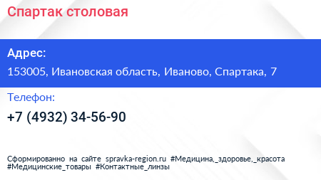 Спартак, столовая по адресу 153005, Ивановская область, Иваново, Спартака, 7 в дальнейшем Организация, размещена в следующих категориях: