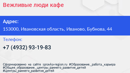 Вежливые люди, кафе по адресу 153000, Ивановская область, Иваново, Бубнова, 44 в дальнейшем Организация, размещена в следующих категориях: