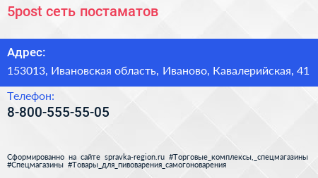 5post, сеть постаматов по адресу 153013, Ивановская область, Иваново, Кавалерийская, 41 в дальнейшем Организация, размещена в следующих категориях: