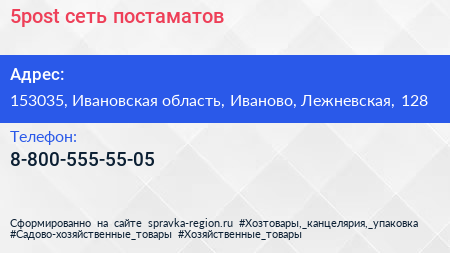 5post, сеть постаматов по адресу 153035, Ивановская область, Иваново, Лежневская, 128 в дальнейшем Организация, размещена в следующих категориях: