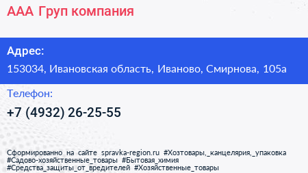 ААА Груп, компания по адресу 153034, Ивановская область, Иваново, Смирнова, 105а в дальнейшем Организация, размещена в следующих категориях: