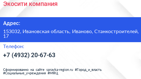 Для связи с организацией воспользуйтесь номером телефона: +7 (4932) 20-67-63.