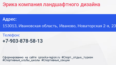 Эрика, компания ландшафтного дизайна по адресу 153013, Ивановская область, Иваново, Новаторская 2-я, 23 в дальнейшем Организация, размещена в следующих категориях:
