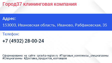 Город37, клининговая компания по адресу 153003, Ивановская область, Иваново, Рабфаковская, 35 в дальнейшем Организация, размещена в следующих категориях: