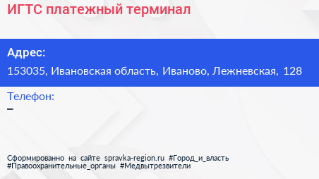 ИГТС, платежный терминал по адресу 153035, Ивановская область, Иваново, Лежневская, 128 в дальнейшем Организация, размещена в следующих категориях: