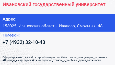 Ивановский государственный университет по адресу 153025, Ивановская область, Иваново, Смольная, 48 в дальнейшем Организация, размещена в следующих категориях: